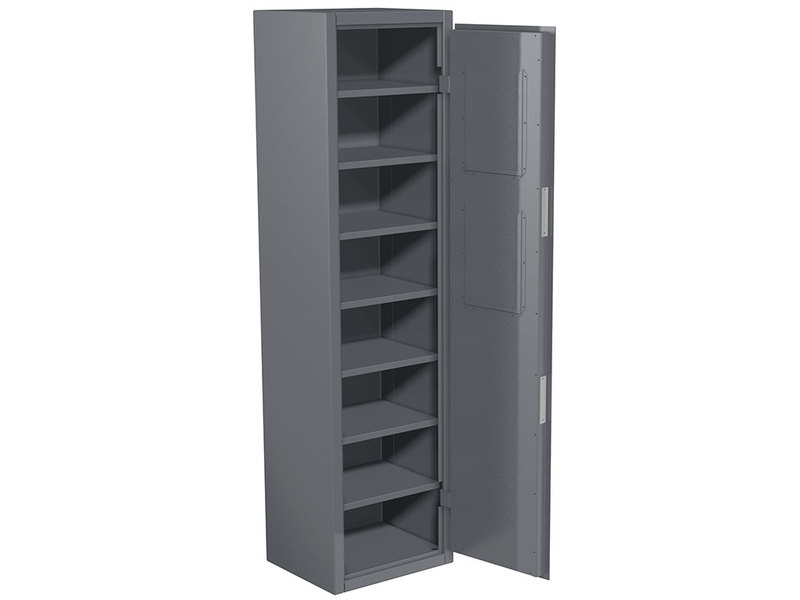 - Оборудован 7 съемными полками. Конструкция полок обеспечивает гарантированно надежное и устойчивое положение за счет фиксации полок в выбранном положении. Нагрузка на полку 100 кг